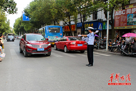 张家界市公安局交警支队直属一大队在市城区主要学校(园)周边道路恢复了“助学岗”勤务模式。