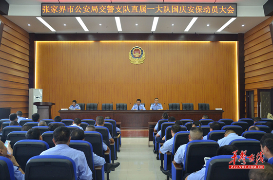 华声在线张家界站9月30日讯(通讯员 覃国良 李燕)2015年9月30日下午3时,张家界市公安局交警支队直属一大队全体民警及协辅警在张家界市公安局交警支队会议室召开国庆安保动员大会,会议由彭长国大队长主持,副支队长张华洲参加动员大会并作重要指示。