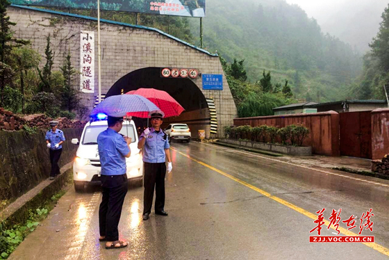10月1日上午8时,天下着大雨,最考验交警的天气,但这没有阻挡交警上岗的脚步,你看在小溪隧洞前交警撑着雨伞指挥来来往往的车辆;在s305线上交警冒雨检查省道上来往的长途客运车辆,不容有半点马虎;九天洞景区交警为前来旅行的自驾车保驾护航。