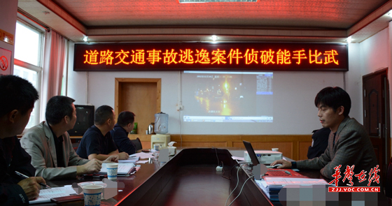 当天上午9时,在桑植县交警大队三楼会议室,考评组一行观看桑植交警大队事故处理中队长彭发奎提供交通肇事逃逸侦破案参赛PPT演示。通过PPT演示,大家对此案侦破在无目击证人、无监控视频条的件下,通过海量排查、多方查找,连续作战,摒弃大量虚假信息,在24小时内将交通肇事逃逸者抓获,给予高度评价,认为此案具有典型性、难度性,侦破过程中曲折性很值得大家借鉴和推广。随后,考评组对交警大队执法办案区、交通事故处理中队办案区进行了查看,抽调各类卷案和危险路段排查等台帐,最后考评组根据《2014年至2015年张家界市交警道路事故处理岗位等级评定表》以队伍建设、办公场所建设、办案质量和制度建设、交通事故逃逸案件侦破等9项内容进行分项评分。