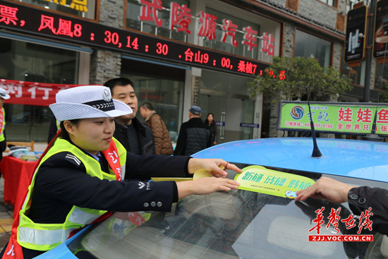 华声在线张家界站12月2日讯 (通讯员 胡石友 樊文佳婧)“为了安全,你们交警有心,我们驾驶员肯定更加用心……”12月2日上午,在武陵源区桂花路,交通民警化身志愿者,一边为机动车辆张贴个性车贴,一边进行交通安全宣传,这是交警部门在“122”全国交通安全日活动上的一个侧影。