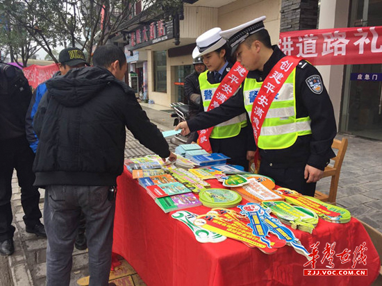 2015年12月2日是第四个“全国交通安全日”。为进一步加大《刑法修正案(九)》法律法规宣传力度,预防和遏制道路交通事故的发生,张家界市公安局交通警察支队直属二大队在活动日当天,组织开展了以“拒绝危险驾驶?安全文明出行”为主题的启动仪式,并对主题活动进行了部署安排。大队组织各中队民警深入管辖区,开展了发放交通安全车贴、《刑法(九)》宣传手册、悬挂横幅等系列宣传活动;,由大队女子执勤组化身交通安全志愿者,身披“讲道路礼仪、树道路新风”、“拒绝酒后驾驶”等礼仪带,在车流量大的路段设置宣传服务点,免费为机动车张贴个性车贴,宣传倡导驾驶员安全文明驾驶;安排民警在路面开展巡逻执勤,严查超速、超员、超载等严重交通违法行为,消除交通安全隐患,为“122全国交通安全日”主题活动营造浓厚的安全氛围。