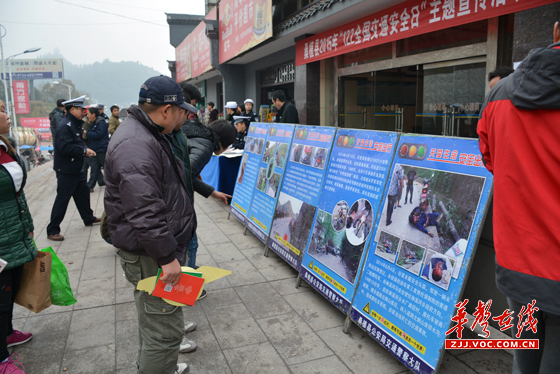 民警利用展板展出桑植县近两年发生的重大交通事故案例以及原因分析