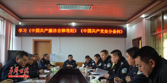 大会由交警大队支部书记刘晓东主持,副书记瞿绍球组织学习《中国共产党廉洁自律准则》和《中国共产党纪律处分条例》的具体内容,要求每位党员要熟记党员廉洁自律规范,做到坚持公私分明,先公后私,克已奉公;坚持崇廉拒腐败,清白做人,干净做事;坚持尚俭戒奢,艰苦朴素,勤俭节约;坚持吃苦在前,享受在后,甘于奉献。