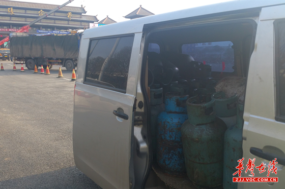 上午10点左右,永定大队民警在长张高速公路张家界收费站进行例行检查时,拦下了一辆银灰色的面包车。而当民警将车门打开检查时,眼前的一幕让民警惊呆了。民警发现,面包车的车厢内装满了液化气罐。据而驾驶员介绍,液化气罐内均装有液化石油气,车内一共装了33罐液化气。