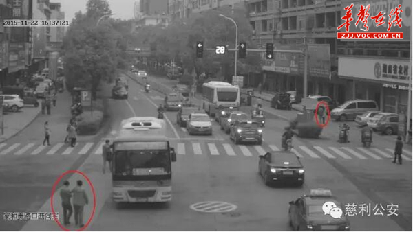 2015年11月22日下午4时24分和4时37分,分别在人民医院门口和幸福路红绿灯处被扒的失主们,积极向警方报案,还原真相。