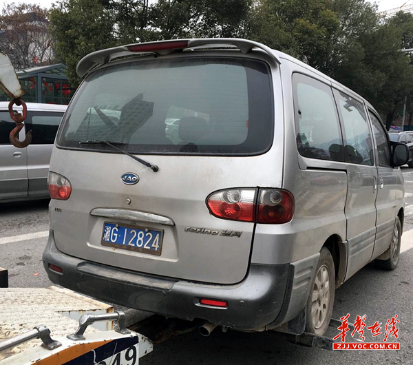 华声在线张家界站1月28日讯(通讯员 覃国良 李燕)1月28日上午,张家界市公安局交警支队直属一大队执勤民警在市城区开展“平安春运”街面巡逻,11时20分,当巡逻至回龙路老汽车站路口禁停路段时,发现一辆悬挂湘G12824的灰色江淮牌小型客车违法停车,且妨碍车辆正常通行,执勤民警随即通过车载喊话示意车辆驶离,但该车并未有驶离的迹象。执勤民警立即下车查看情况,并做好调查取证工作。在通过车辆查询系统查询时,发现其车辆号牌已呈注销状态,执勤民警一边控制好车辆,一边通过大队指挥中心调派拖车将其拖离现场。目前,该案在进一步的调查中。
