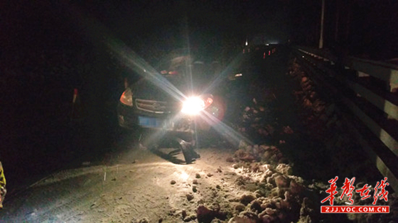 2016年1月22日,张家界境内高速公路飘起了大雪,气温也跌至零度以下。晚上十一时许,省高警局张家界支队长邹伍林带领永定大队队长吴浩、慈利大队教导员封海翔一行沿张花高速高速督导检查永定大队抗冰保畅工作。当邹伍林一行巡逻至张花高速高速澧水特大桥东往西方向时,发现对向桥面停着一辆黑色轿车,仔细一看,该车保险杠脱落,车身存在明显的刮擦痕迹,路面也有明显的刹车印,很明显,这台车刚刚发生了交通事故。而此时,东往西方向正因为铺设麻袋而实行交通管制,邹伍林一边安排吴浩和封海翔指挥民警实行交通管制,自己则带领民警陈启智冒雪行走千余米,抵达对向车道事故发生点。经过初步观察,车内空无一人,后排座还遗留了部分物品和一台手机。民警多方寻找,并没有发现该车的驾驶员和乘车人。为了确保路面通行安全,民警立即通知施救队将车辆拖移至安全地方。