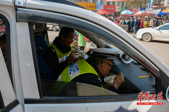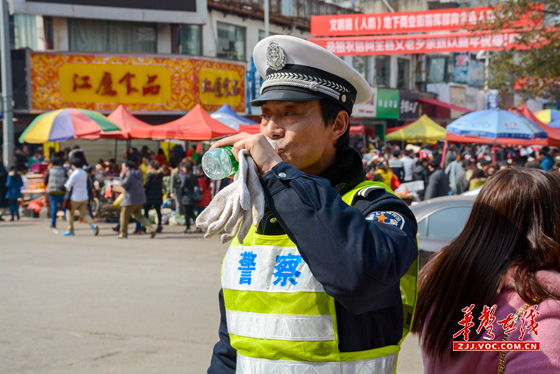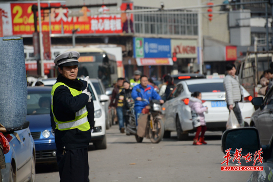 华声在线张家界站2月6日讯(通讯员 卜雅玲)春节期间,桑植县老城区十字路口路段车水马龙,拥挤不堪,车流、人流络绎不绝,为了保证道畅通,交警每天七点钟就上岗执勤,站在马路上指挥交通,一站就是十几个小时,嘴喊干了、嗓冒烟了、腿不听使唤,午餐、晚餐都不能按时了,但为了全县人民群众过年购物道路顺畅,再累再苦也心甘情愿。