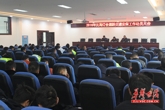 动员会上,由于今年元宵灯会涉及道路多,交通安保困难大。罗劲松副大队长结合辖区道路实际情况,在详细宣读道路交通安全保卫工作警力部署和临时道路交通管制路段的同时,要求辖区中队民警保持通讯畅通,根据人流量波动变化,协调岗点警力,遇突发紧急情况,及时上报,灵活处理。