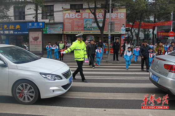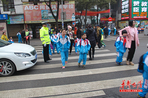 华声在线张家界站2月25日讯(通讯员 李燕)2月25日是开学的第一天,学校周边道路交通压力增大,学生横过马路的危险系数增加,张家界市公安局交警支队直属一大队根据辖区学校周边道路的实际情况,全面恢复“护学岗”,辖区交通民警带领文明劝导员积极参与“护学岗”工作中,加强校门口及周边道路的车辆疏通工作,护送学生安全过马路,全力保障师生及家长的道路交通安全,。