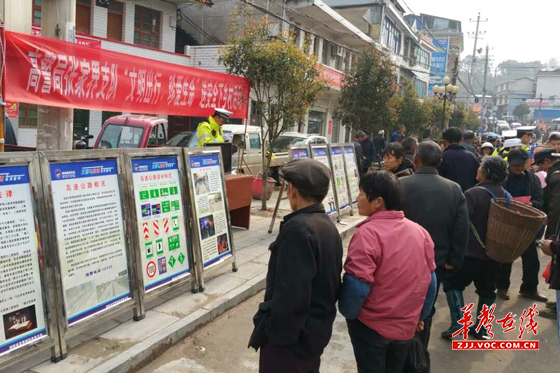 高警局张家界支队借阳和赶集为契机,开展送安全下乡活动来向沿线居民宣传安全教育知识,提高沿线居民安全意识 ,在活动现场,很多居民都向民警表示以后要遵守交规,不再违法进入高速公路。