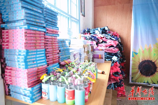 省水运管理局送来的安全教育读本、安全插页练习本、爱心礼包等