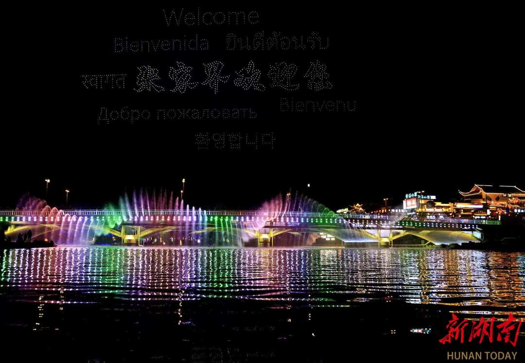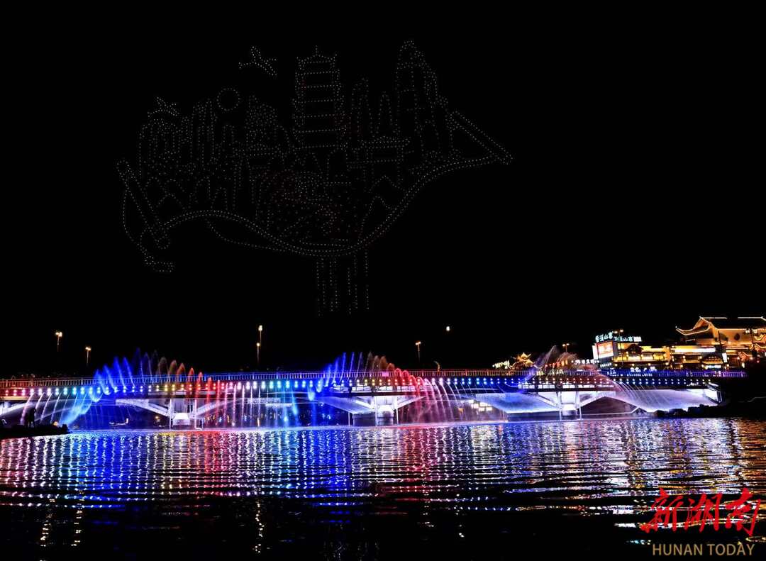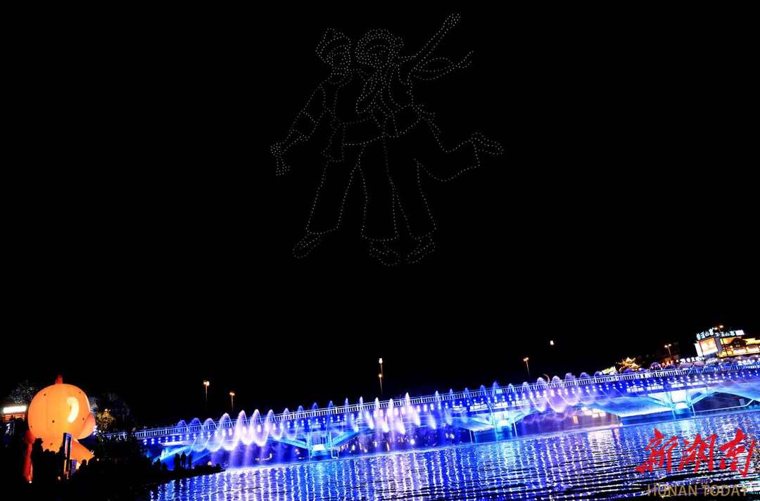 武陵源上空演绎无人机灯光秀 现代光影添彩夜经济