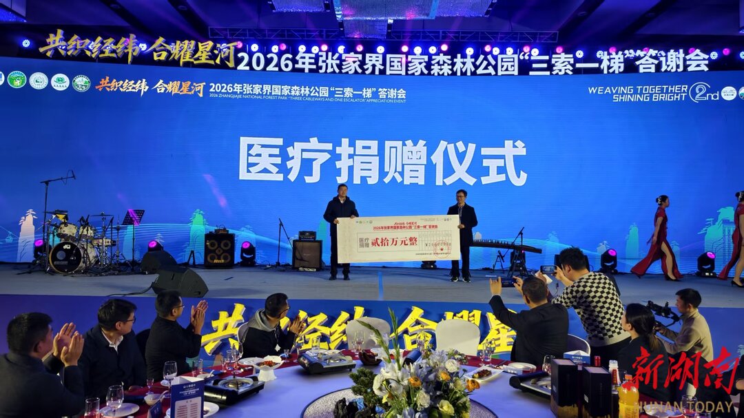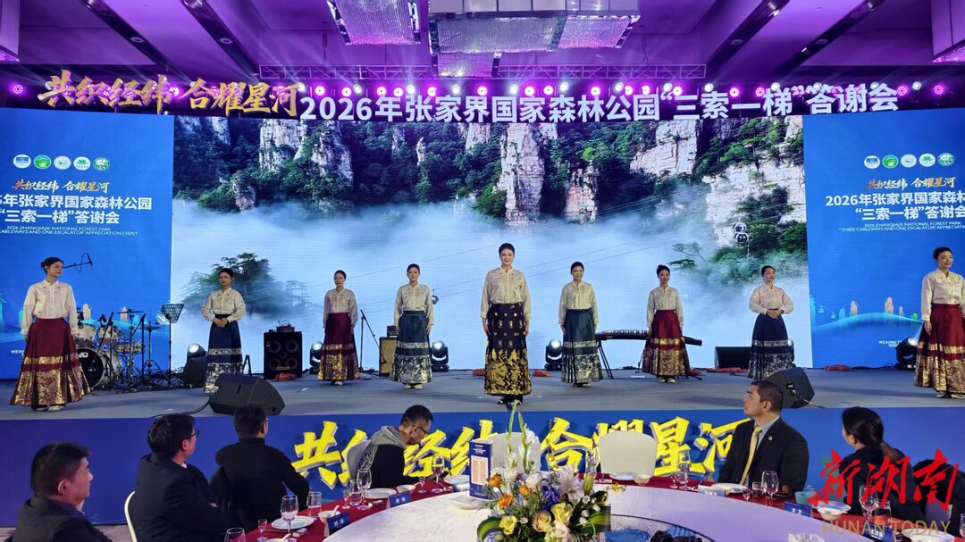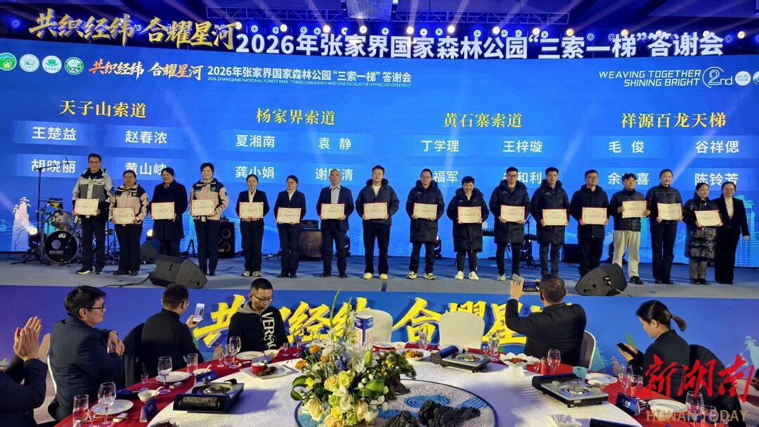 湖南日报·新湖南客户端1月30日讯(记者 田育才 通讯员 庹级明)1月30日,张家界国家森林公园以“共织经纬 合耀星河”为主题,举办“三索一梯”答谢会,汇聚支持景区发展的部门单位、旅行社、媒体、OTA平台及文旅行业嘉宾,共叙合作情谊、共话发展新篇,回顾2025年度“一票制”联营成效,为景区高质量发展凝聚磅礴力量。