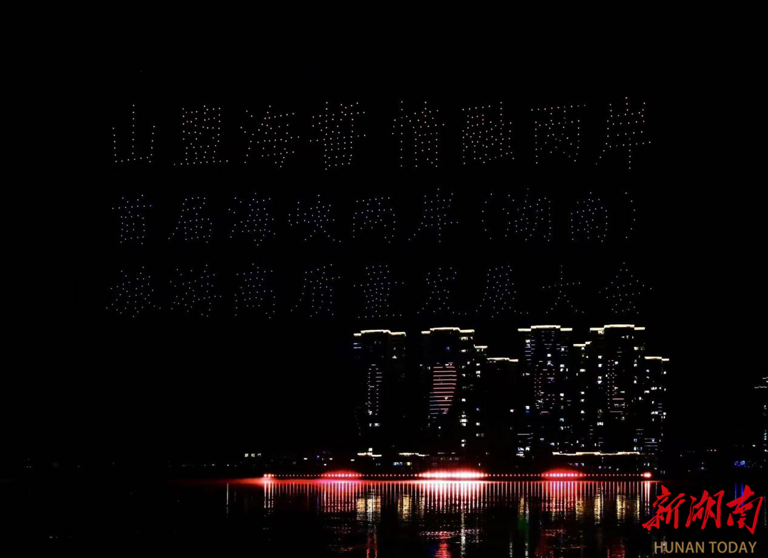 千架无人机自澧水岸边腾空而起,陈能宽、杜心五、孙开华,一个个耳熟能详的慈姑英雄点亮慈利夜空。文化与科技的邂逅,带来的是震撼的视觉盛宴,也擎起慈利儿女的精神图腾。